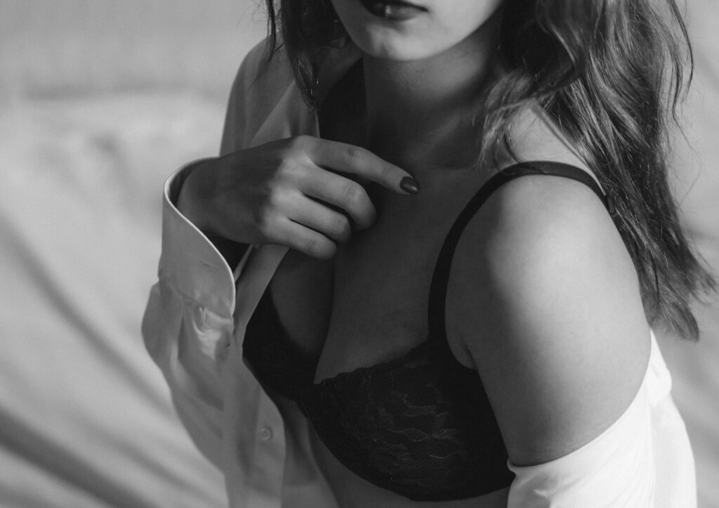 私は彼女の誘いに応じ、ワンピースを脱がせ、ブラジャーを外した。形の良い胸が露わになり、乳首はすでに硬くなっている。